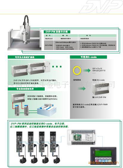 DVP-PM系列運(yùn)動(dòng)控制器支持G-code,電子凸輪,任二軸圓弧插補(bǔ),任三軸直線插補(bǔ)等復(fù)雜運(yùn)動(dòng)控制功能。